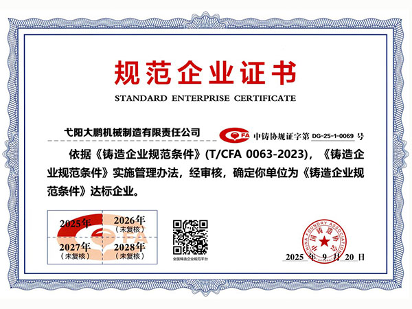 • 09-28弋陽大鵬機(jī)械制造有限責(zé)任公司成功取得規(guī)范